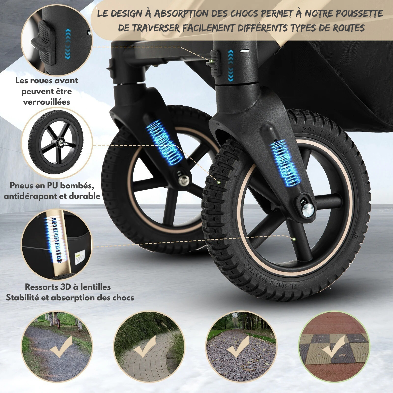 Chaque poussette est livrée avec ses accessoires essentiels. Selon le modèle, vous pouvez recevoir en cadeau : couvre-pieds, moustiquaire, porte-gobelet, ou encore adaptateurs pour siège auto. La liste des cadeaux offerts est précisée sur chaque fiche produit.