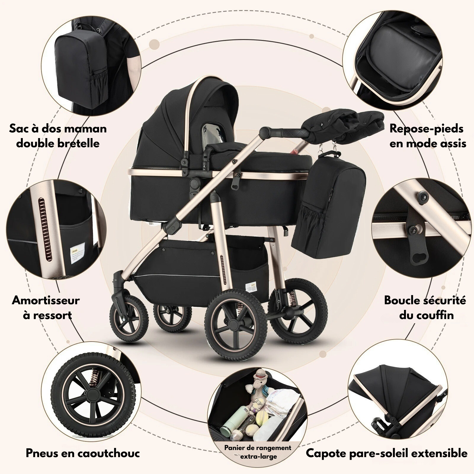 Chez Balades des Petits, nous savons que chaque parent a des besoins différents. C’est pourquoi nous avons créé des poussettes 3-en-1 évolutives, pratiques et élégantes, qui s’adaptent à toutes les situations : en ville, en voyage, en promenade ou au quotidien.
